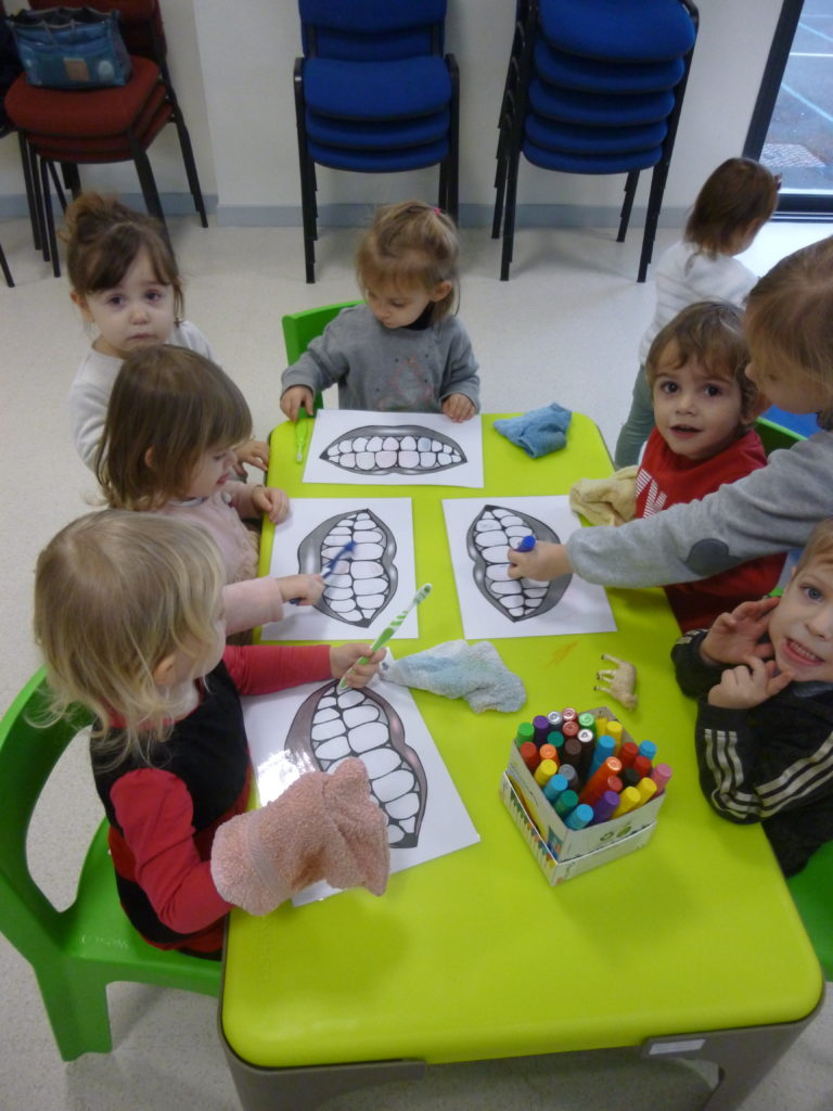 Cet atelier s’est déroulé à Perpezac le Noir, une activité parmi tant d’autres possibles : peinture, modelage, transvasement, chanson, motricité, encastrement, collage…